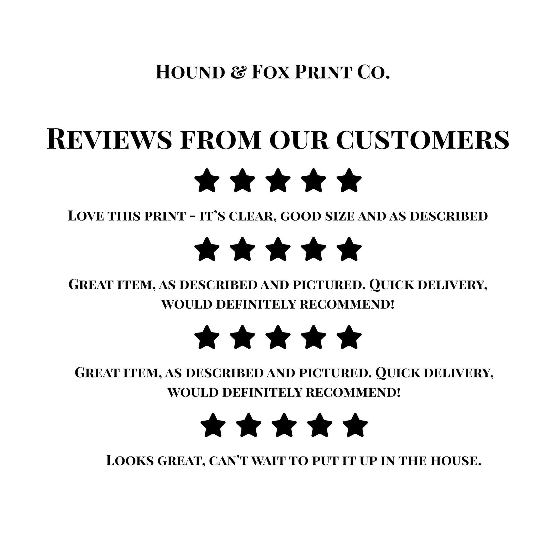 Not happy with your print? No worries, it’s 100% returnable as long as it is returned in the condition it was sent and you contact us within 5 days of receiving the item.